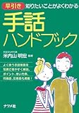 早引き 手話ハンドブック―知りたいことがよくわかる 価格: 1,050円 レビュー評価:5.0 レビュー数:2 とても小さなものですが、単語数はたくさん載っています。